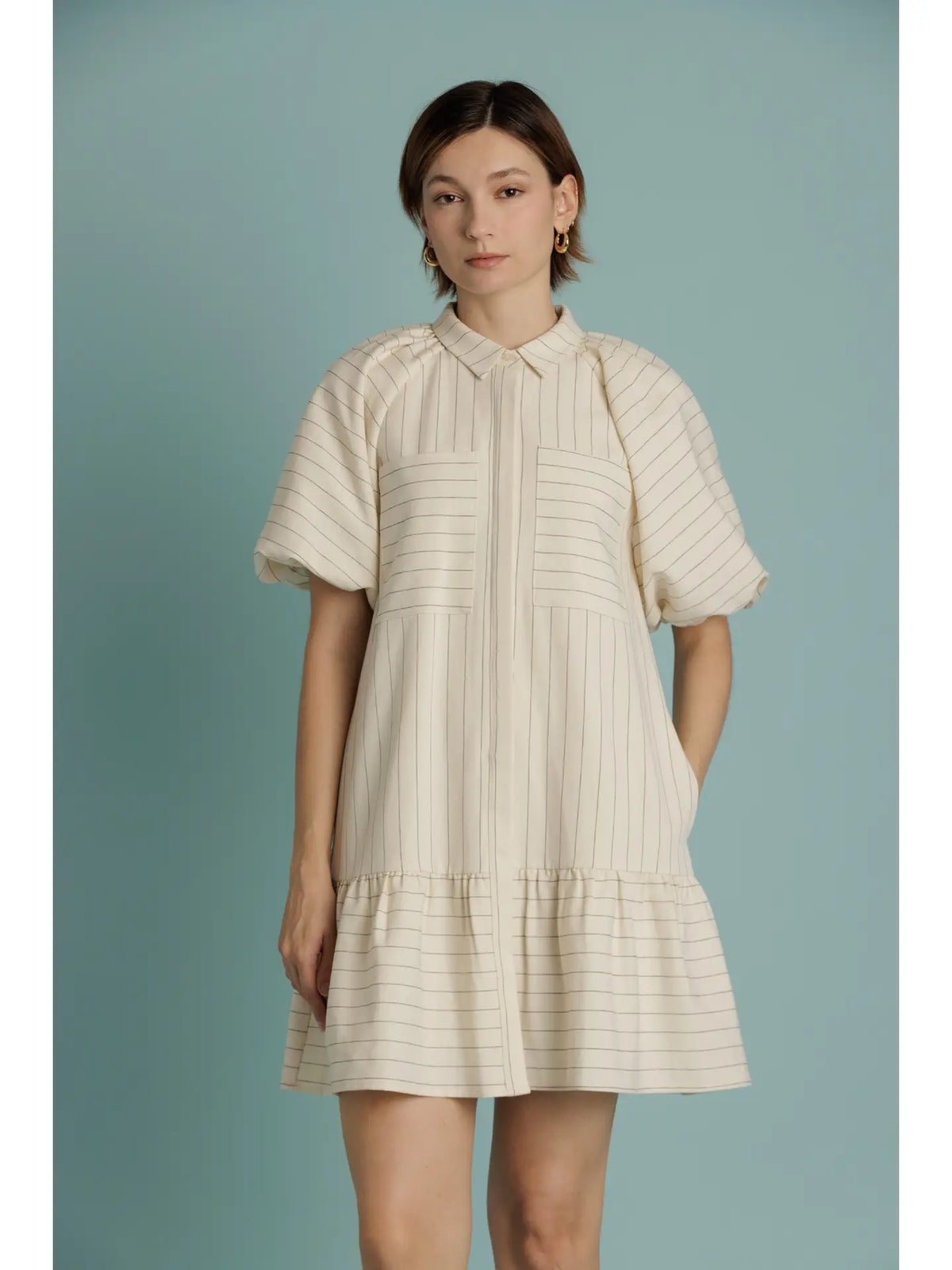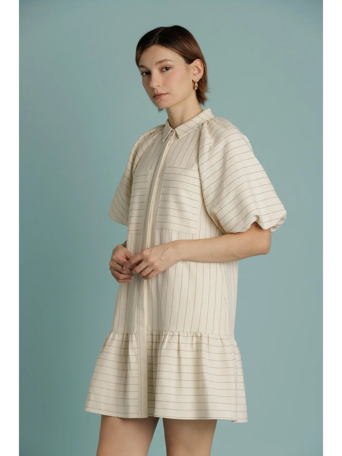 Bany Striped Drop Waist Mini Dress - Cream / XS